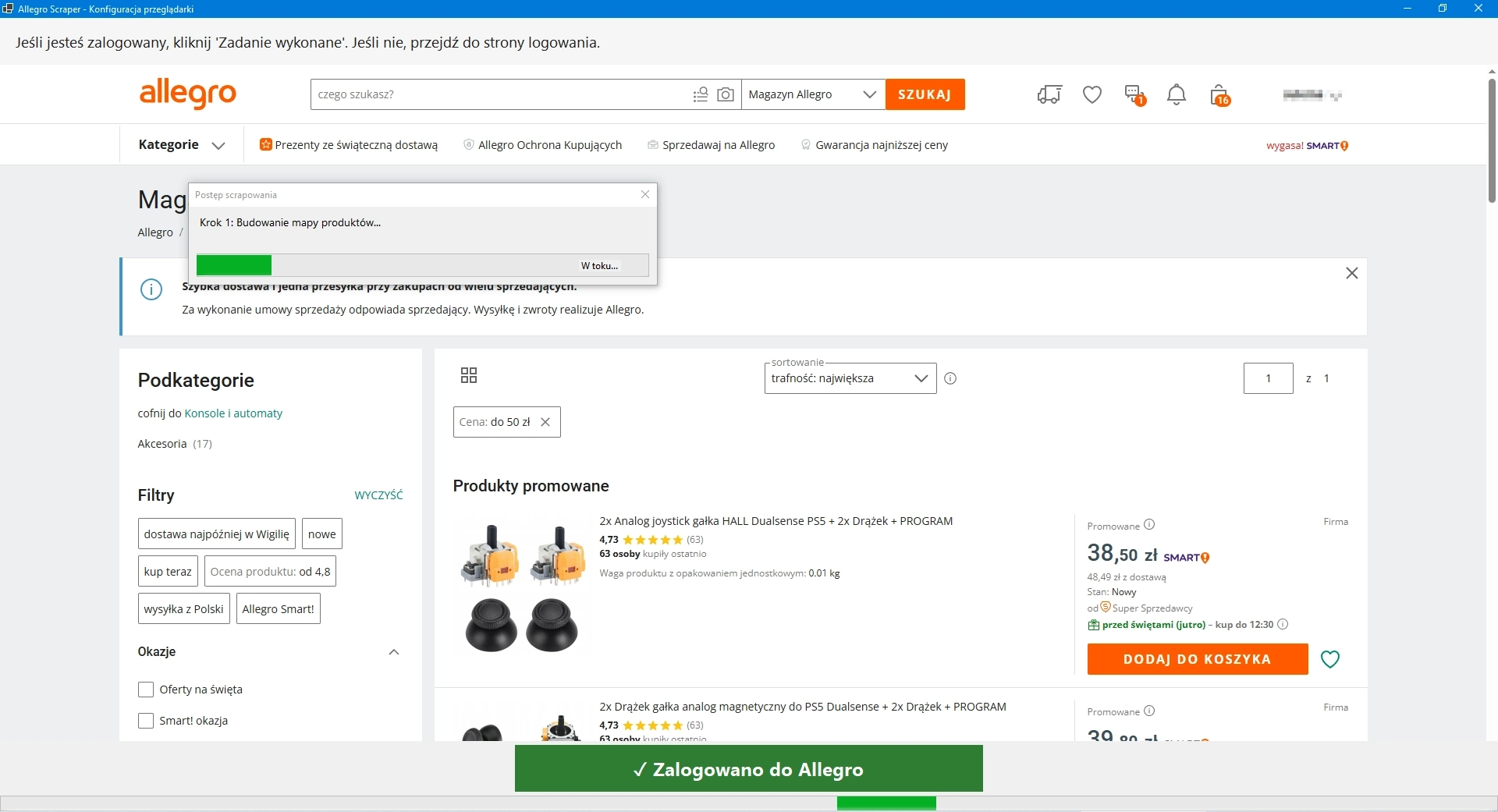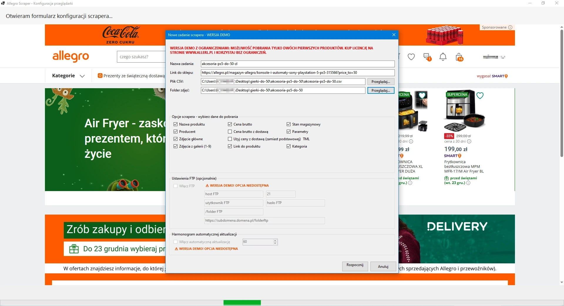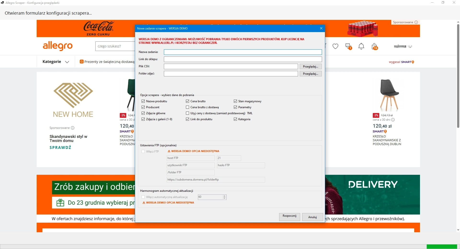 Wersja demonstracyjna AllErl Allegro Scraper
